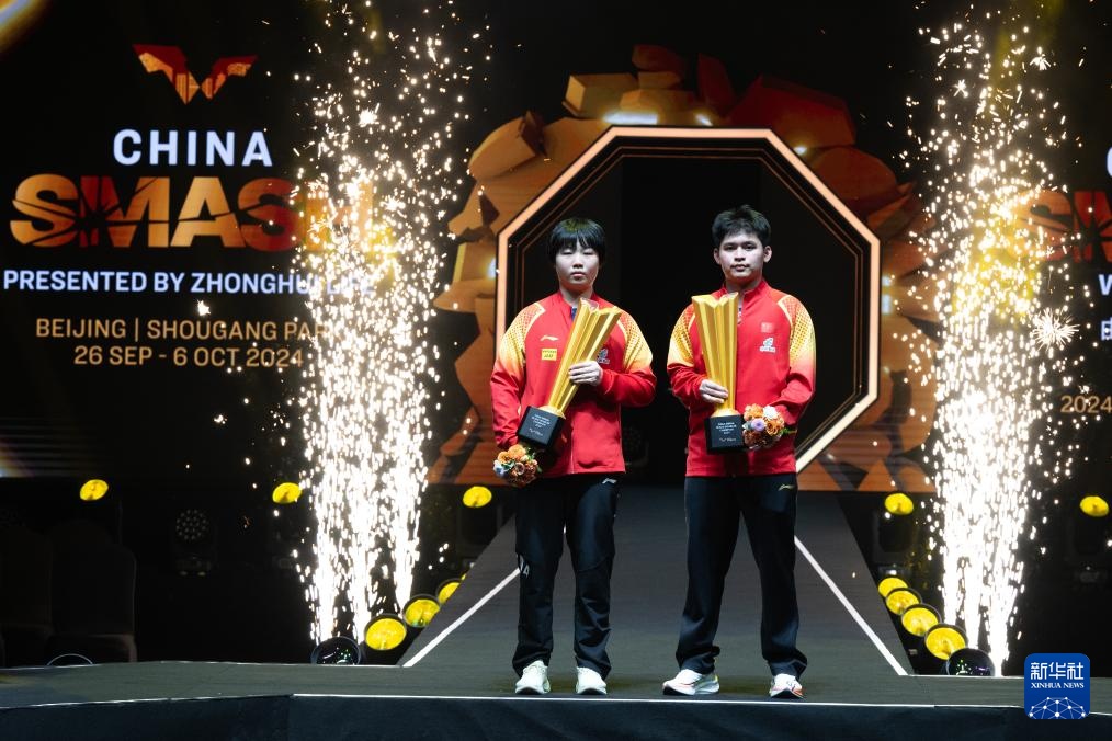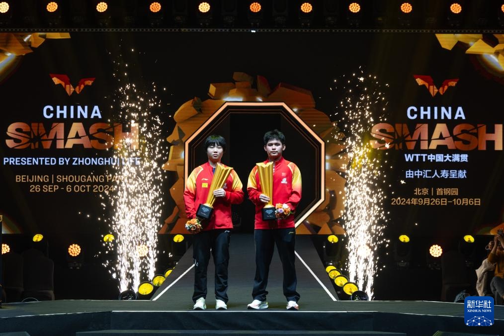 當日,在北京舉行的2024年世界乒乓球職業大聯盟(WTT)中國大滿貫混雙決賽中,中國組合林詩棟/蒯曼3比1戰勝隊友林高遠/王藝迪,奪得冠軍。