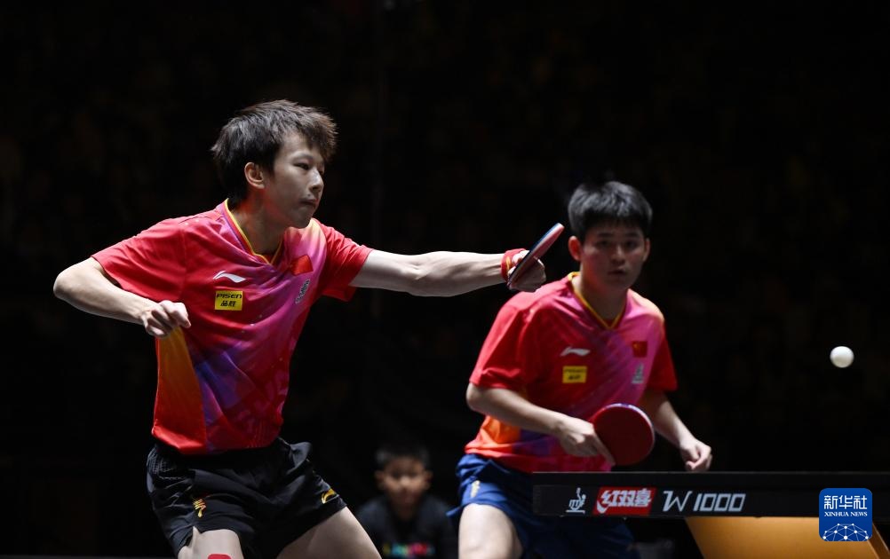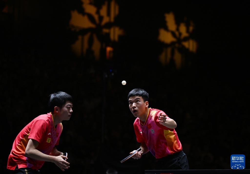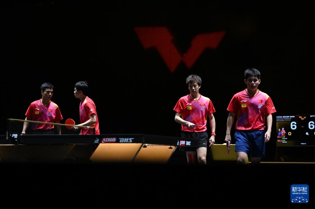 當日,在北京舉行的2024年世界乒乓球職業大聯盟(WTT)中國大滿貫賽男雙半決賽中,中國選手林高遠/林詩棟3比2戰勝隊友袁勵岑/向鵬,晉級決賽。