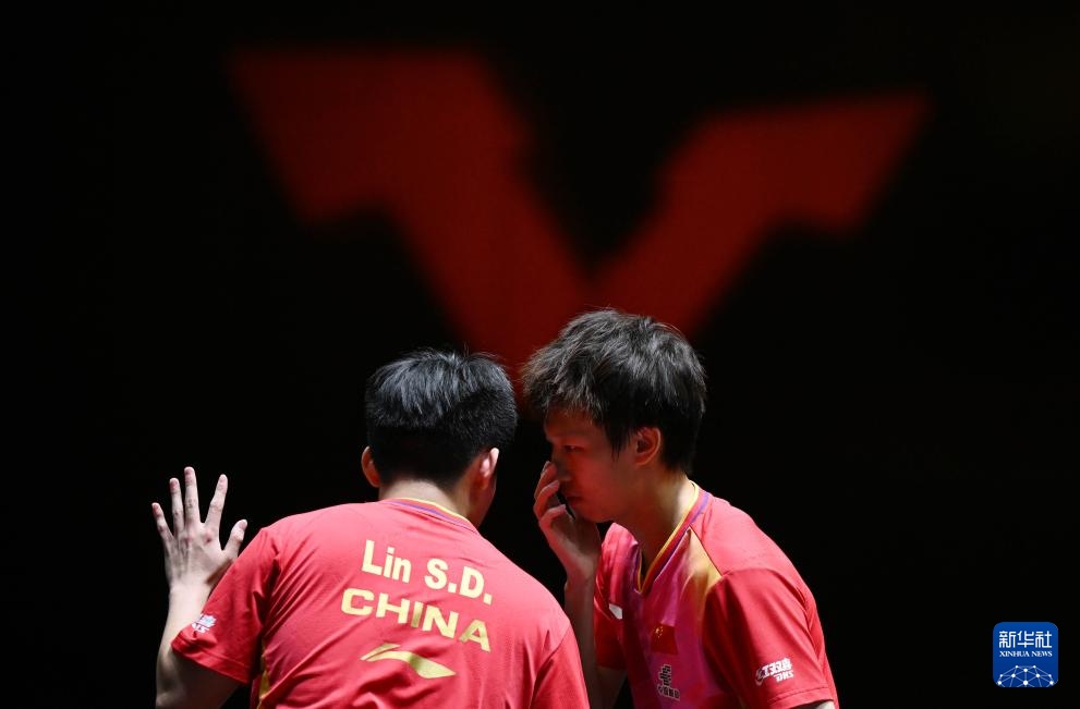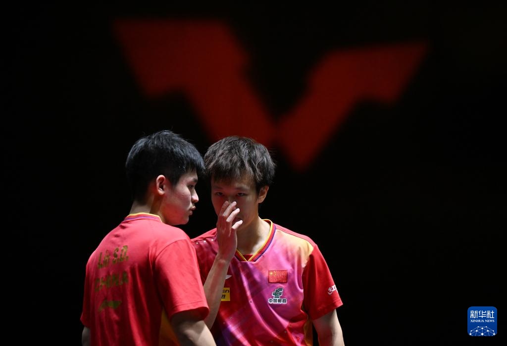 10月4日,林高遠(右)/林詩棟在比賽中商討戰術。