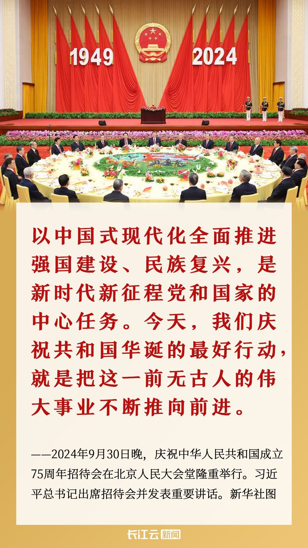 習近平總書記在慶祝中華人民共和國成立75周年招待會上講話時指出,“以中國式現代化全面推進強國建設、民族復興,是新時代新征程黨和國家的中心任務。今天,我們慶祝共和國華誕的最好行動,就是把這一前無古人的偉大事業不斷推向前進”。