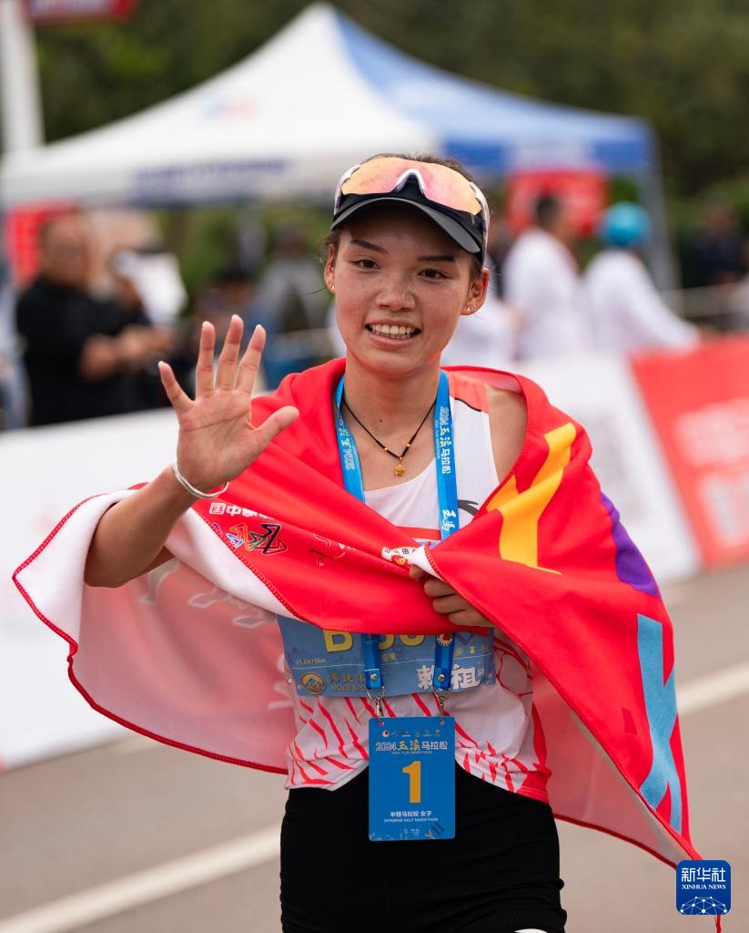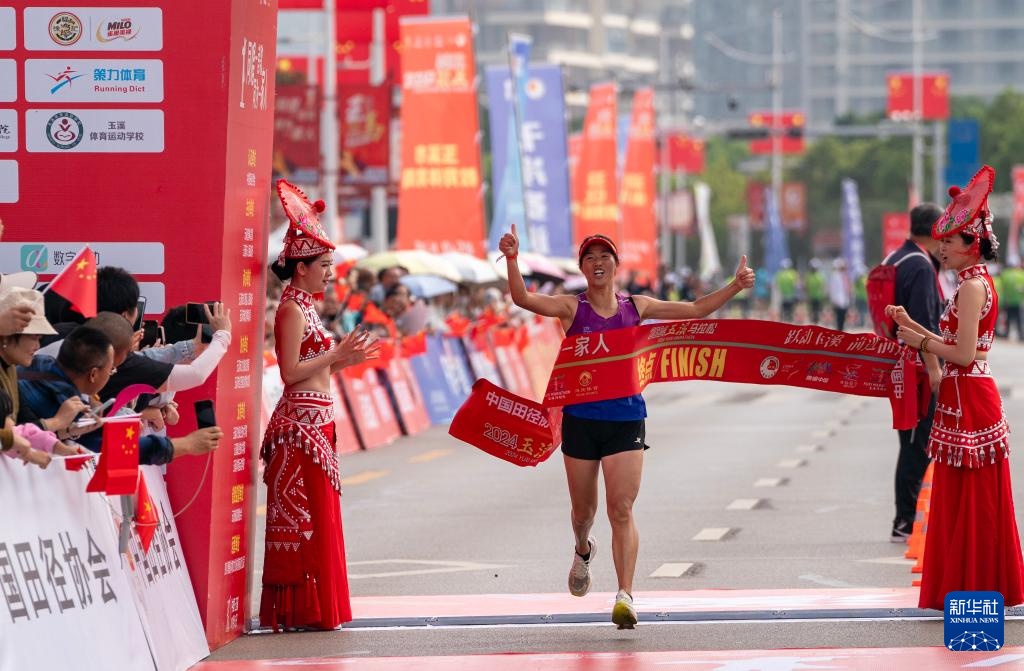 10月5日,選手李應(yīng)翠在比賽中沖過終點(diǎn)。最終,她獲得半程馬拉松女子組冠軍。