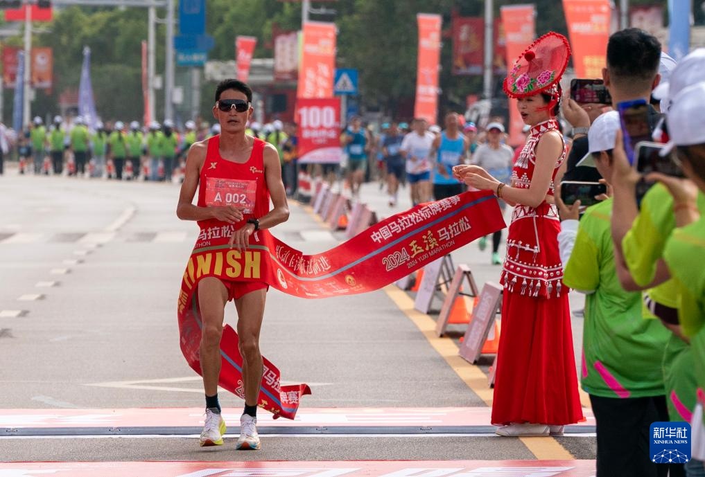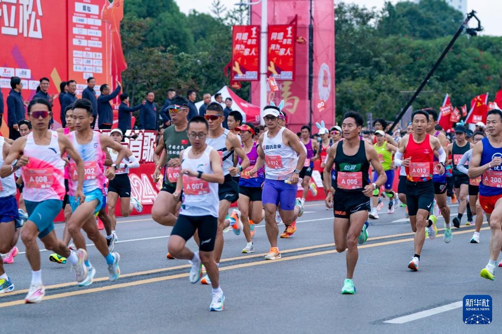 10月5日,選手蔣金志在比賽中沖過終點(diǎn)。最終,他獲得半程馬拉松男子組冠軍。
