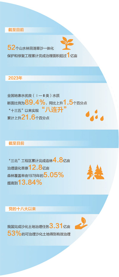 新中國成立75周年以來,特別是黨的十八大以來,我國生態環境保護和建設取得舉世矚目的成就。黨的二十屆三中全會通過的《中共中央關于進一步全面深化改革、推進中國式現代化的決定》提出,健全山水林田湖草沙一體化保護和系統治理機制。