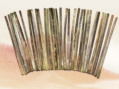 戰國時期中山國中山成公陪葬墓出土的骨算籌。 河北博物院供圖 |