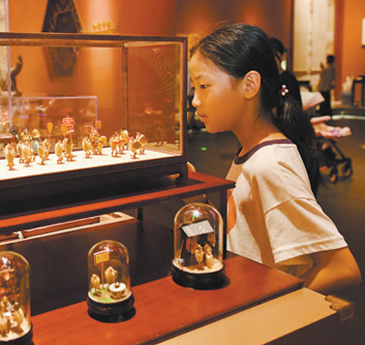 游客在中國大運河非物質文化遺產展示館內參觀。