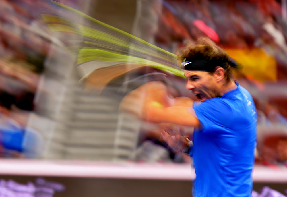 2017年10月3日,西班牙選手納達爾在2017中國網球公開賽男子單打第一輪比賽中戰勝法國選手普伊。 新華社記者賀長山攝