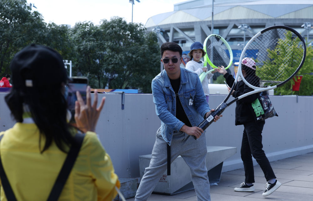 2024年10月1日,觀眾在國家網球中心內留影。新華社記者 白雪飛 攝