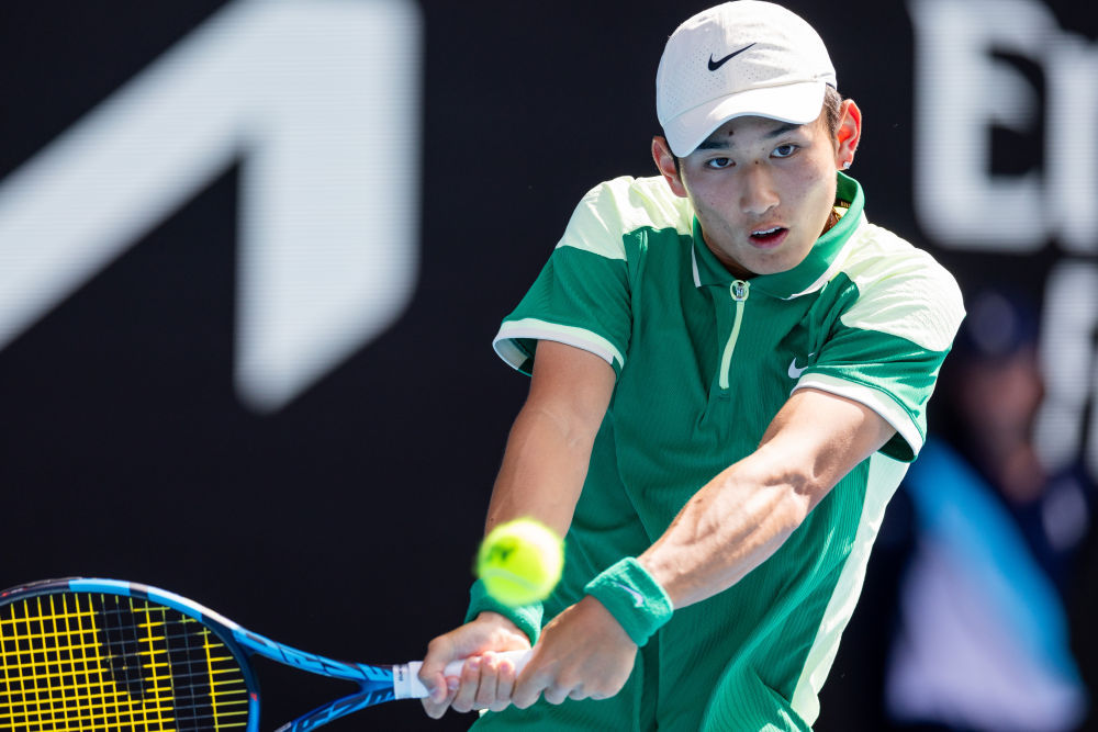 2024年1月20日,商竣程在2024年澳大利亞網球公開賽男單第三輪比賽中對陣西班牙選手阿爾卡拉斯。新華社發(儲晨攝)