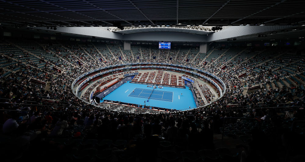 2024年9月28日,觀眾在鉆石球場觀看2024年中國網球公開賽男子單打第二輪意大利選手辛納與俄羅斯選手薩菲烏林的比賽。 新華社記者 王麗莉 攝