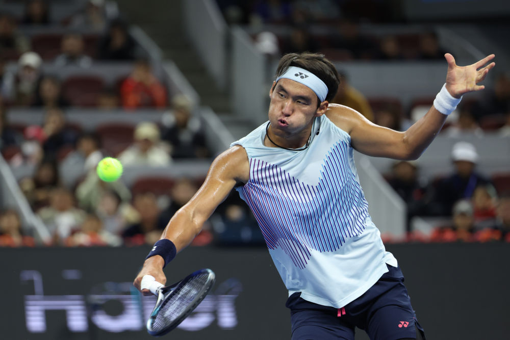 2024年10月1日,布云朝克特在2024中國網球公開賽男單半決賽中對陣意大利選手辛納。 新華社記者 白雪飛 攝