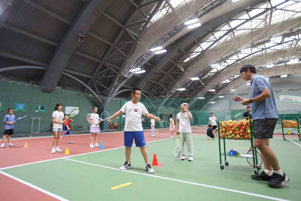 2024年8月14日,小學員在北京一家網球俱樂部參加網球暑期夏令營。新華社記者 程麗 攝