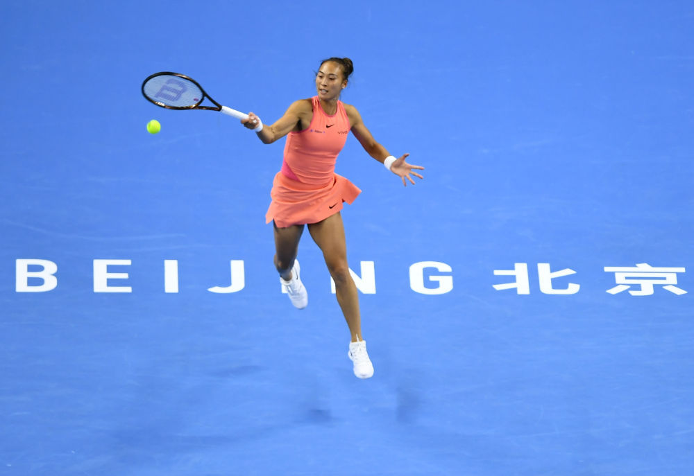 2024年9月30日,鄭欽文在2024中國網球公開賽女單第三輪比賽中對陣阿根廷選手波多羅斯卡。 新華社記者 張晨霖 攝