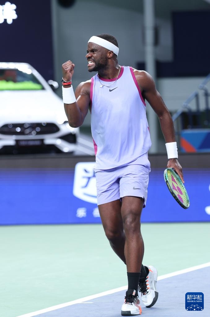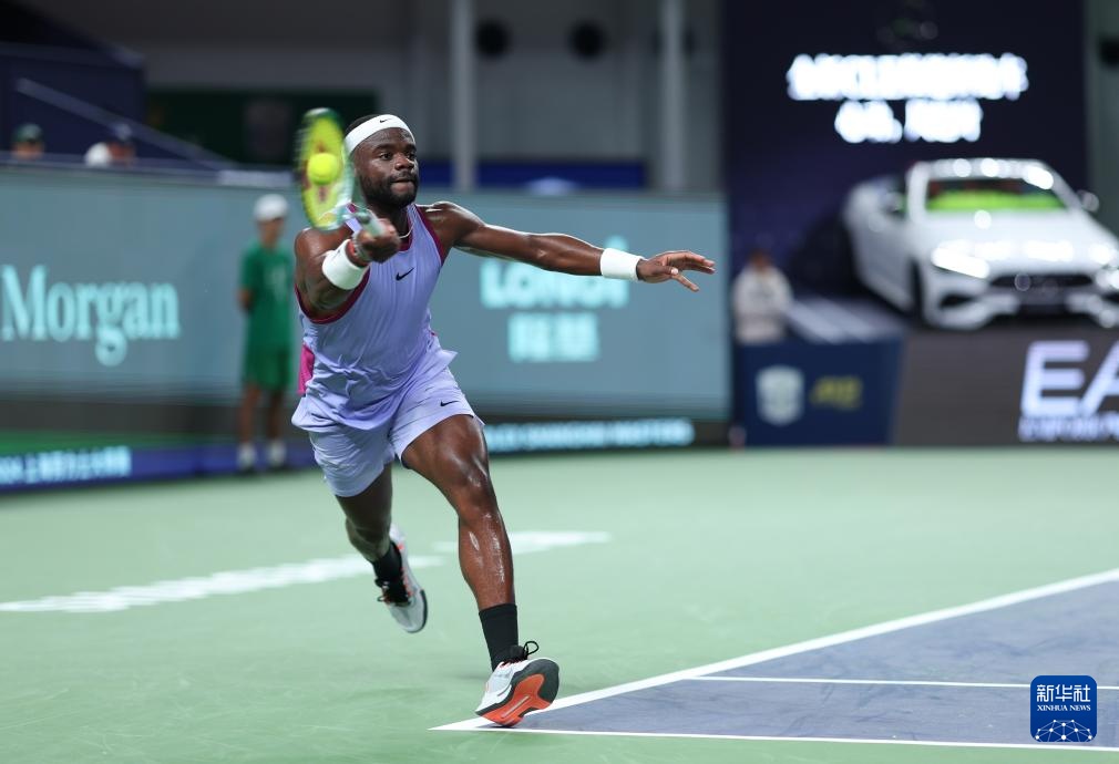 10月7日,蒂亞福在比賽中回球。