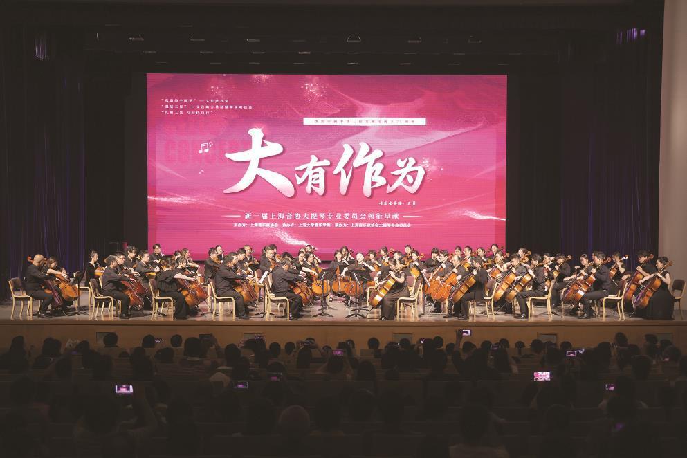 作為2024長三角大提琴藝術周暨展演活動的高潮,由上海音樂家協會主辦、上海大學音樂學院協辦、上海音樂家協會大提琴專業委員會承辦的“慶祝中華人民共和國成立75周年——‘大有作為’惠民音樂會”10月6日晚舉行。這場演出標志著新一屆大提琴專委會的首次亮相,且門票全部免費向公眾開放。王勇擔任導聆,通過簡明生動的講解帶領觀眾感受大提琴音樂的獨特魅力。音樂會匯聚了長三角地區及全國多個省市的大提琴專家、演奏家及專業院校師生,來自上海、浙江、江蘇、福建、吉林、廣東、香港等地的演奏者們共同演繹了國內外經典曲目,展現了大提琴藝術的深厚文化底蘊。