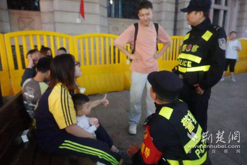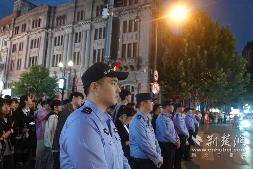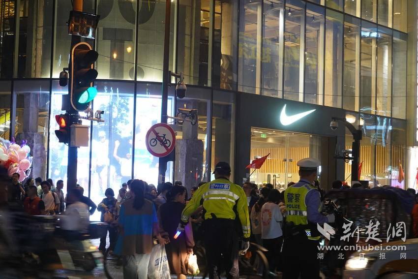 在江漢路步行街隨處可見(jiàn)鮮紅的五星紅旗和“警藍(lán)”色的身影,他們有的在步行街步巡、有的站在瞭望崗觀察人流、有的在十字路口指揮交通、有的拿著喇叭引導(dǎo)群眾避開(kāi)擁擠,民警輔警每天一早上崗,直到24時(shí)撤崗。