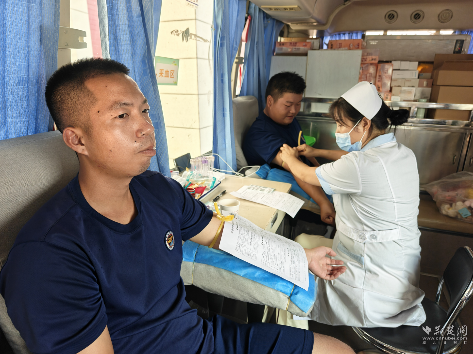 在無償獻血活動現(xiàn)場,消防救援人員精神飽滿、熱情高漲。他們有序地填寫獻血登記表,進行健康征詢和健康檢查等準備工作。醫(yī)護人員耐心地為大家講解獻血的注意事項和流程,確保獻血過程安全、順利。