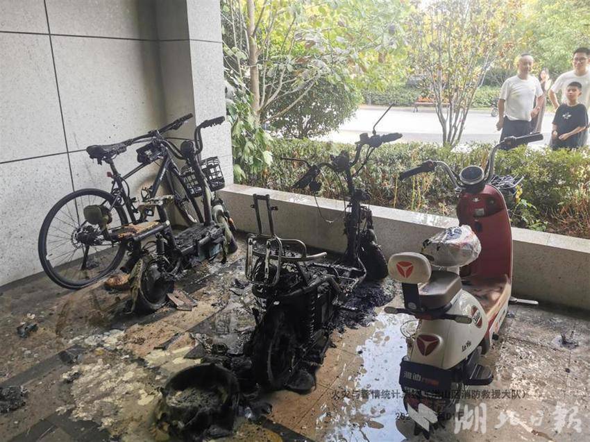 1.2024年9月1日16時19分,武漢市洪山區(qū)保利城四期小區(qū)一市民的電動自行車(車輛品牌型號:歐派;生產(chǎn)企業(yè):無錫市圣寶車輛制造有限公司;電池類型:鉛酸電池;電池品牌型號:電池?zé)龤榫€下店里購買)在架空層停放時起火,起火原因系自燃。