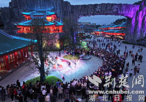 同時,以傳統宮觀道樂為魂,兼顧舞臺藝術的動靜之美,舞蹈、武術、背景視頻與音樂相輔相成的“太和之韻”火紅出圈;集閱讀空間、文化活動、主題茶室、5D影院、天幕帳篷、戶外露營、駐場樂隊表演等多元業態的“太和書院”火熱一片;《武當尋夢》沉浸式夜游景區以19處創意景點引導游客尋仙問道,國慶期間吸引游客11萬人次。