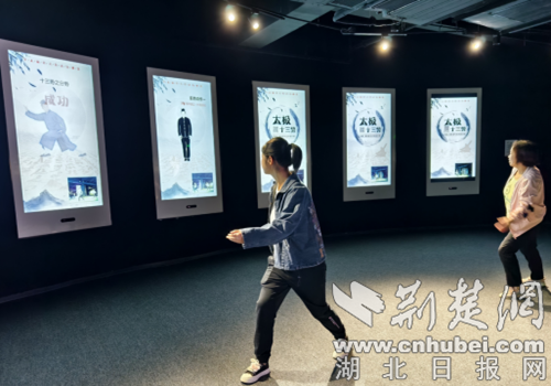 游客在“問道武當”數字客廳體驗武當太極。周容翼 攝