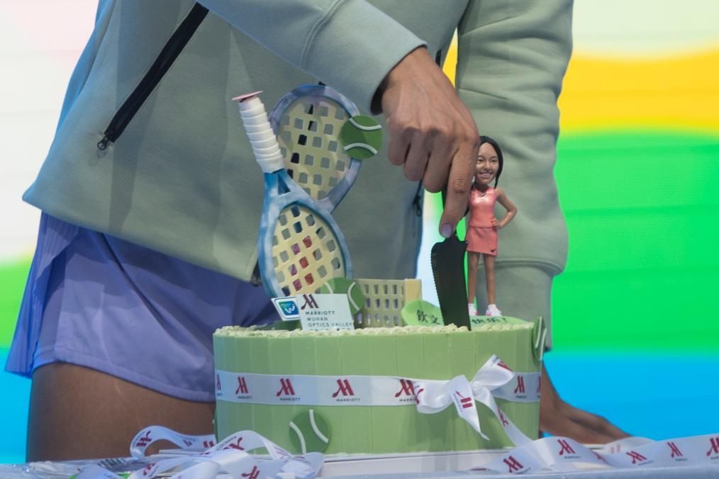 日落黃昏之時,武漢光谷國際網球中心的戶外廣場上,從不同城市趕來的觀眾將舞臺層層包圍,他們高呼“生日快樂”,齊聲為鄭欽文唱起生日歌。