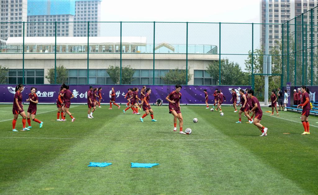 2024年7月13日,中國國家女子足球隊球員在大連足球青訓基地舉行媒體開放日活動。新華社記者 龍雷 攝