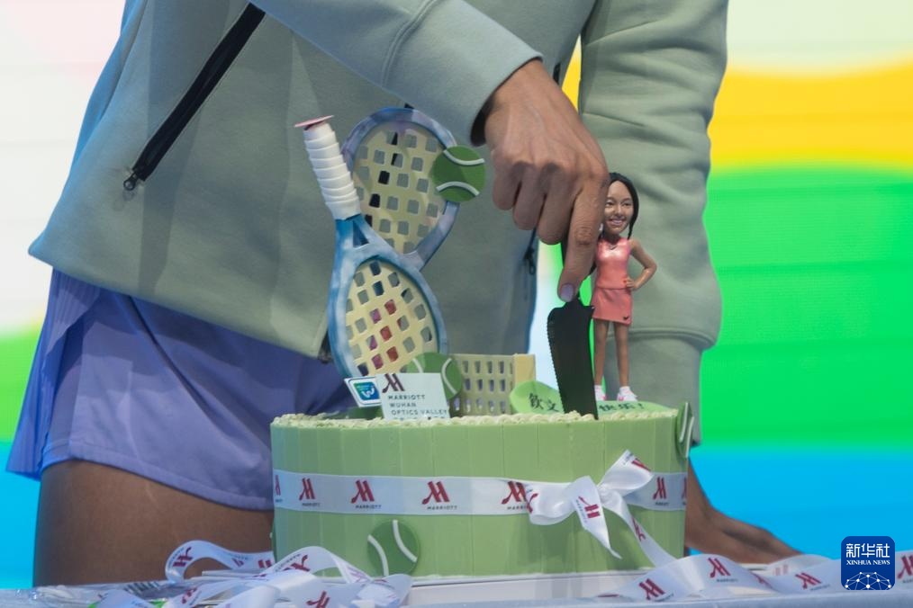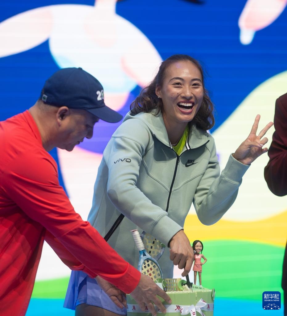 當日,中國選手鄭欽文迎來22歲生日,鄭欽文生日會在武漢光谷國際網球中心舉辦。