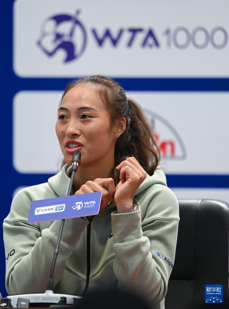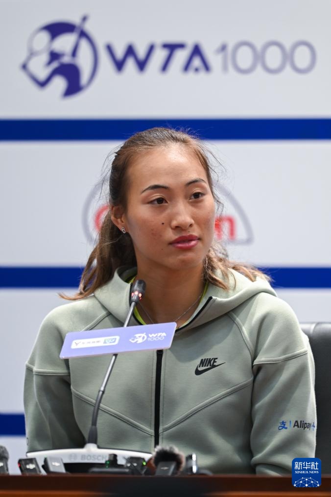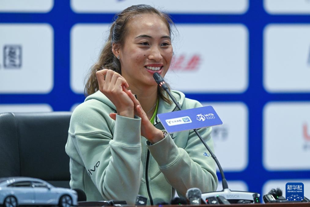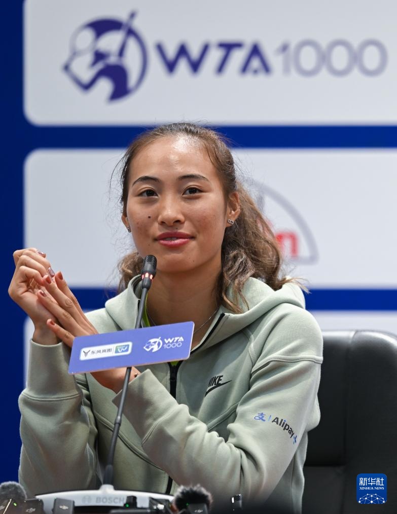 當日,中國選手鄭欽文出席2024年WTA武漢網球公開賽球員見面會。