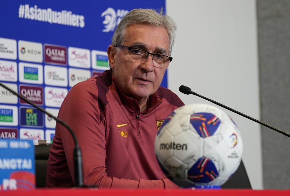 10月9日,中國國家男子足球隊召開賽前新聞發布會,圖為中國隊主教練伊萬科維奇。新華社發(謝思達 攝)