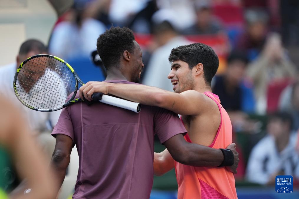10月9日,阿爾卡拉斯(右)與孟菲爾斯在比賽后相互致意。