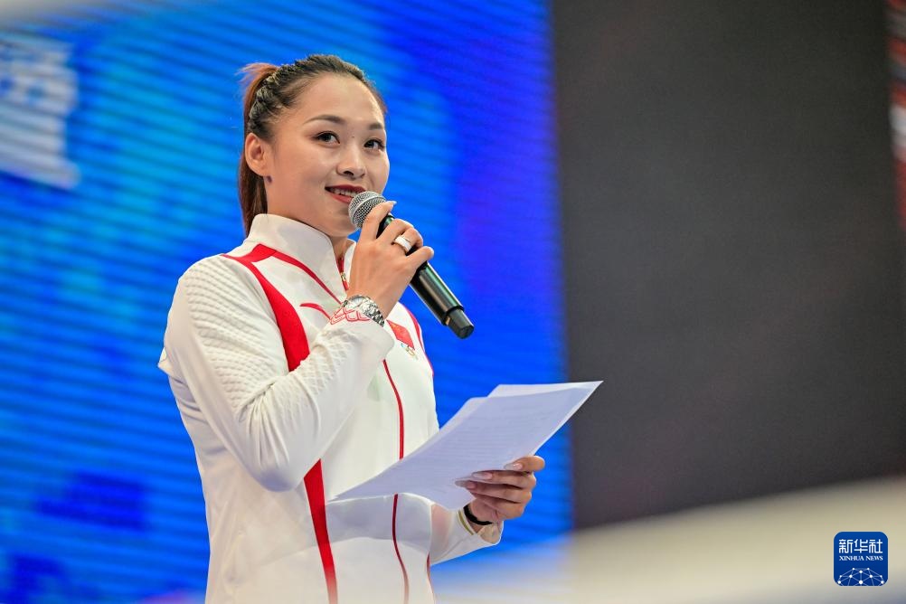 10月9日,巴黎奧運會拳擊女子54公斤級冠軍常園在比賽前致詞。