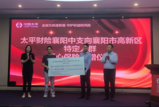 在太平財險湖北分公司的大力支持下,太平財險襄陽中支與襄陽市高新區管委會聯合舉辦了2024年度高新區特定人群愛心保險捐贈儀式。此次捐贈活動積極響應2024年金融教育宣傳月“金融為民譜新篇 守護權益防風險”的主題,通過向高新區特定的高精尖人才、涉農鎮辦特困群體及城區低收入人群,捐贈總保額不低于5000萬元的愛心保險,助力襄陽市高新區政府“招商引資”、“招才引智”戰略,同時解決當地困難群眾的基礎保障問題,為高新區高精尖人才、特殊困難群體提供家庭和人身意外的雙重風險屏障。