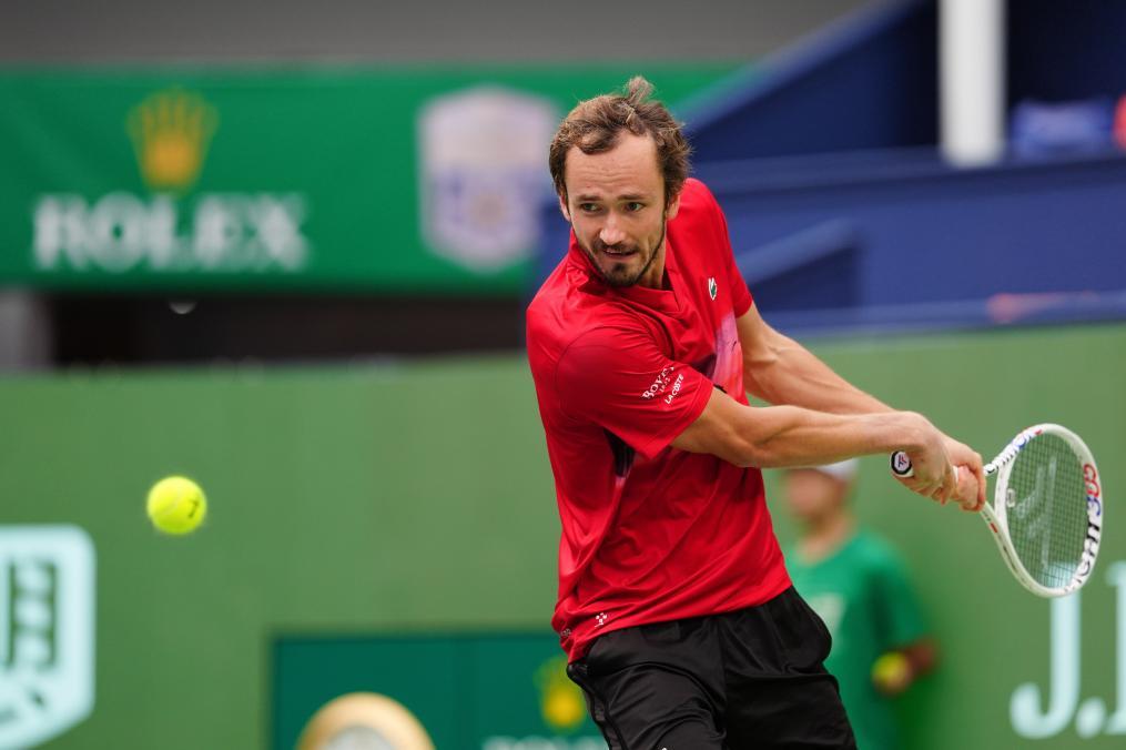 10月10日,梅德韋杰夫在比賽中回球。新華社記者 許雅楠 攝
