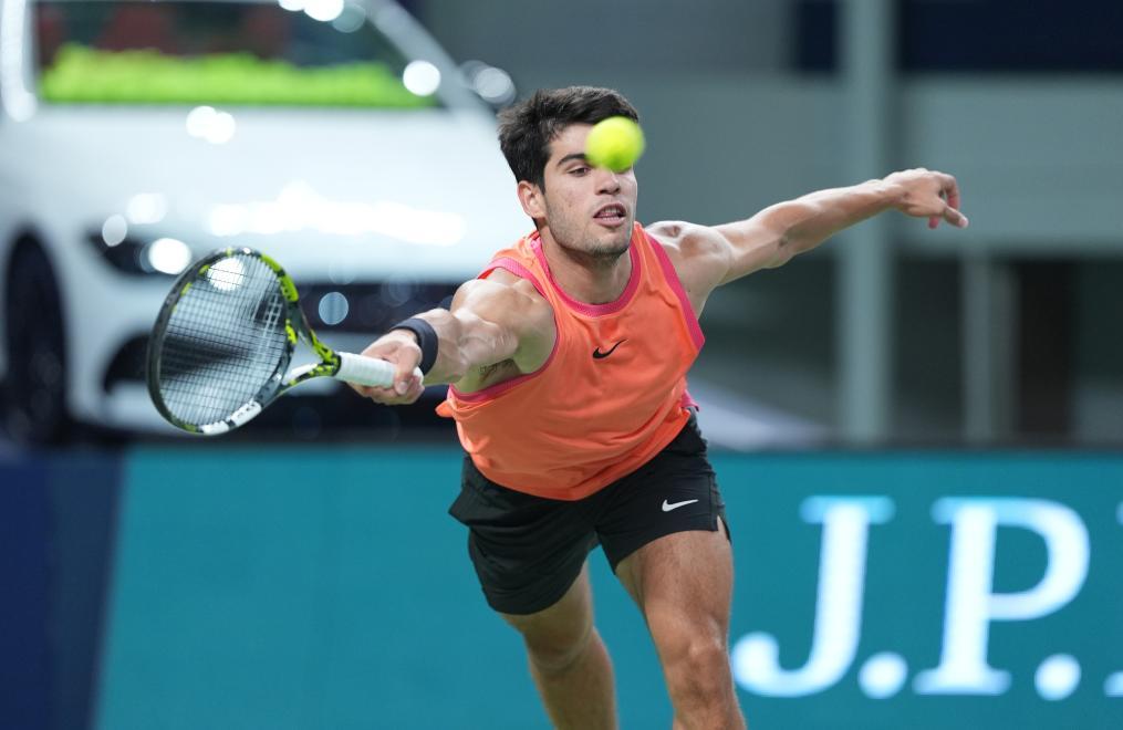 10月10日,阿爾卡拉斯在比賽中。新華社記者 白雪飛 攝