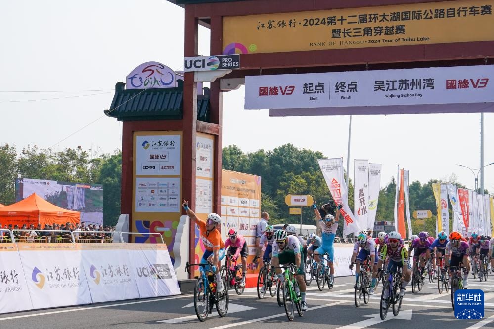 當(dāng)日,2024第十二屆環(huán)太湖國際公路自行車賽暨長三角穿越賽在江蘇省蘇州市吳江區(qū)開啟第三賽段——吳江蘇州灣繞圈賽。最終,飛銳快客磐搭冠蒙古洲際隊選手馬丁·拉斯以2小時16分21秒的成績獲得該賽段第一名。