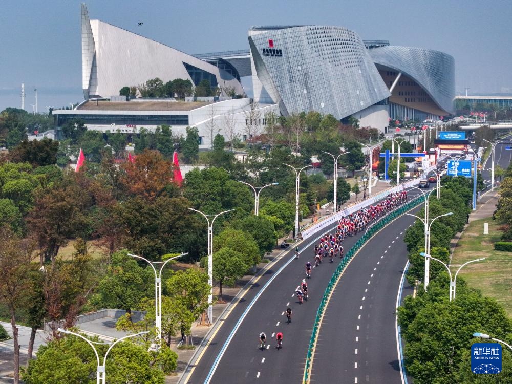 10月11日,選手在比賽中(無人機(jī)照片)。