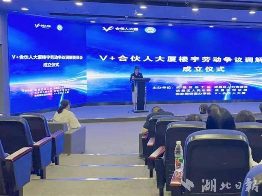 當天,武昌區總工會聯合區人力資源局、區人民法院、區司法局、徐家棚街道在V+合伙人大廈舉行成立儀式。