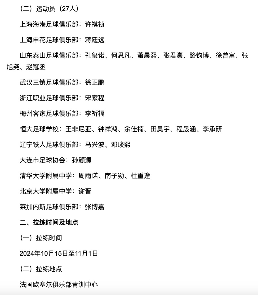 中國U15男足日前正在香河國家足球訓練基地集訓。根據(jù)中國足協(xié)公告,他們拉練地點為法國歐塞爾俱樂部青訓中心。9月26日至10月12日期間,中國U14男足在那里進行了拉練。