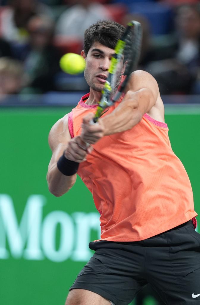 10月10日,阿爾卡拉斯在比賽中。新華社記者 白雪飛 攝