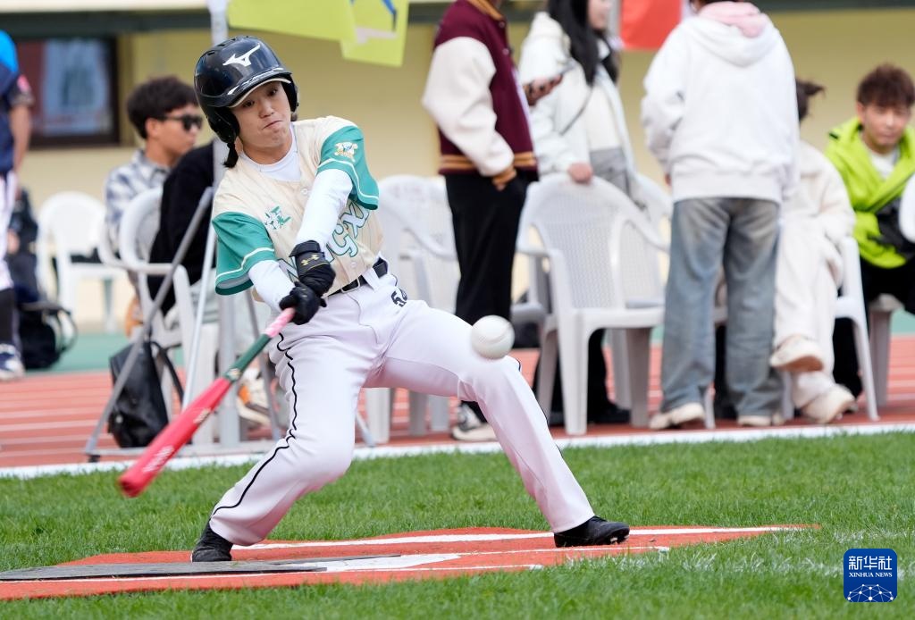 10月12日,來自寧夏野球工坊隊的球員何淼在比賽中。