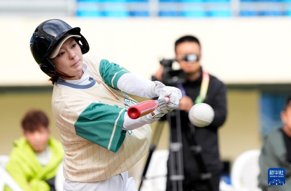 10月12日,來自寧夏野球工坊隊的球員韓紫薇在比賽中。