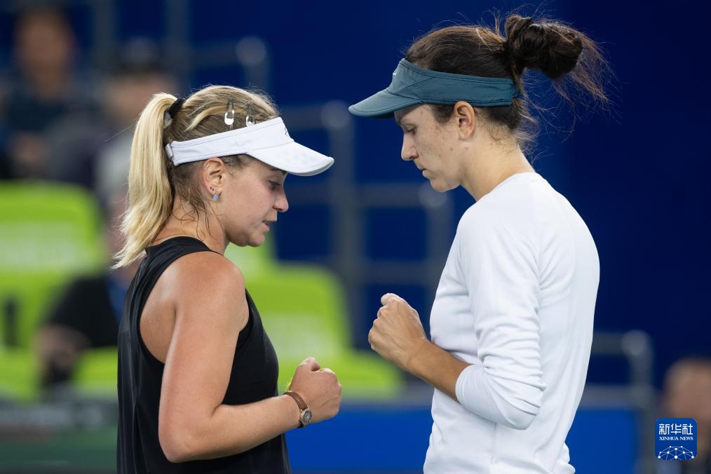 10月13日,達尼麗娜(右)/克羅瑪查娃在比賽中交流。