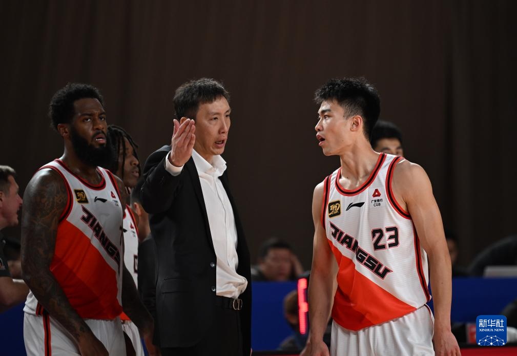 10月13日,江蘇肯帝亞隊主教練易立(中)在比賽間隙指導球員。