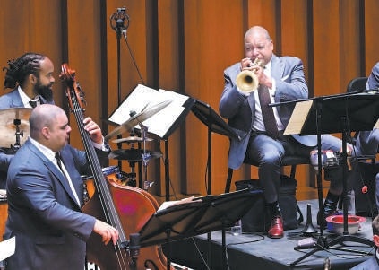 爵士樂大師溫頓·馬薩利斯(右)在演奏中。