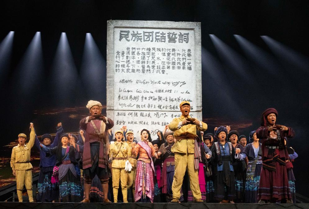 10月13日晚,由云南省話劇院制作出品的民族史詩話劇《瀾滄水長》在云南省大劇院上演。該劇生動展現(xiàn)了新中國成立之初云南各民族代表共同立下普洱民族團(tuán)結(jié)誓詞碑的過程。