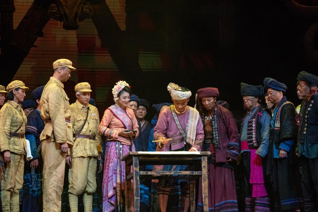 10月13日晚,演員在云南省大劇院表演話劇《瀾滄水長》。新華社記者 陳欣波 攝