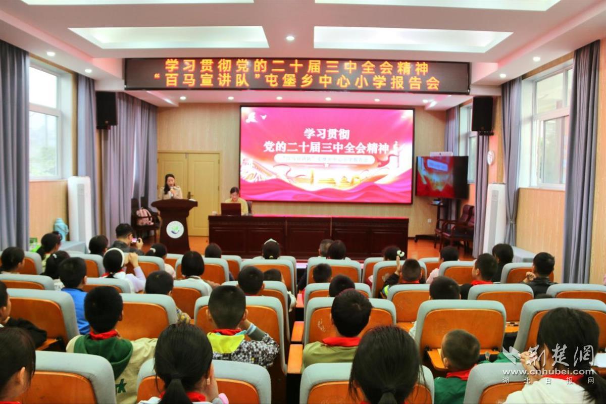 “百馬”宣講隊成員、中南民族大學馬克思主義學院陳文婷和“黎海波名嘴工作室”成員趙玲在屯堡鄉中心小學進行同臺宣講。陳文婷側重于從學理層面圍繞深刻領會進一步全面深化改革的重大意義以及深刻認識進一步全面深化改革的指導思想、總目標和重大原則等進行了宣講。趙玲側重于從學校實踐層面圍繞全力以赴抓好全會精神貫徹落實和高舉隊旗跟黨走等進行了宣講。屯堡鄉中心小學老師和三個年級的學生等參加學習。