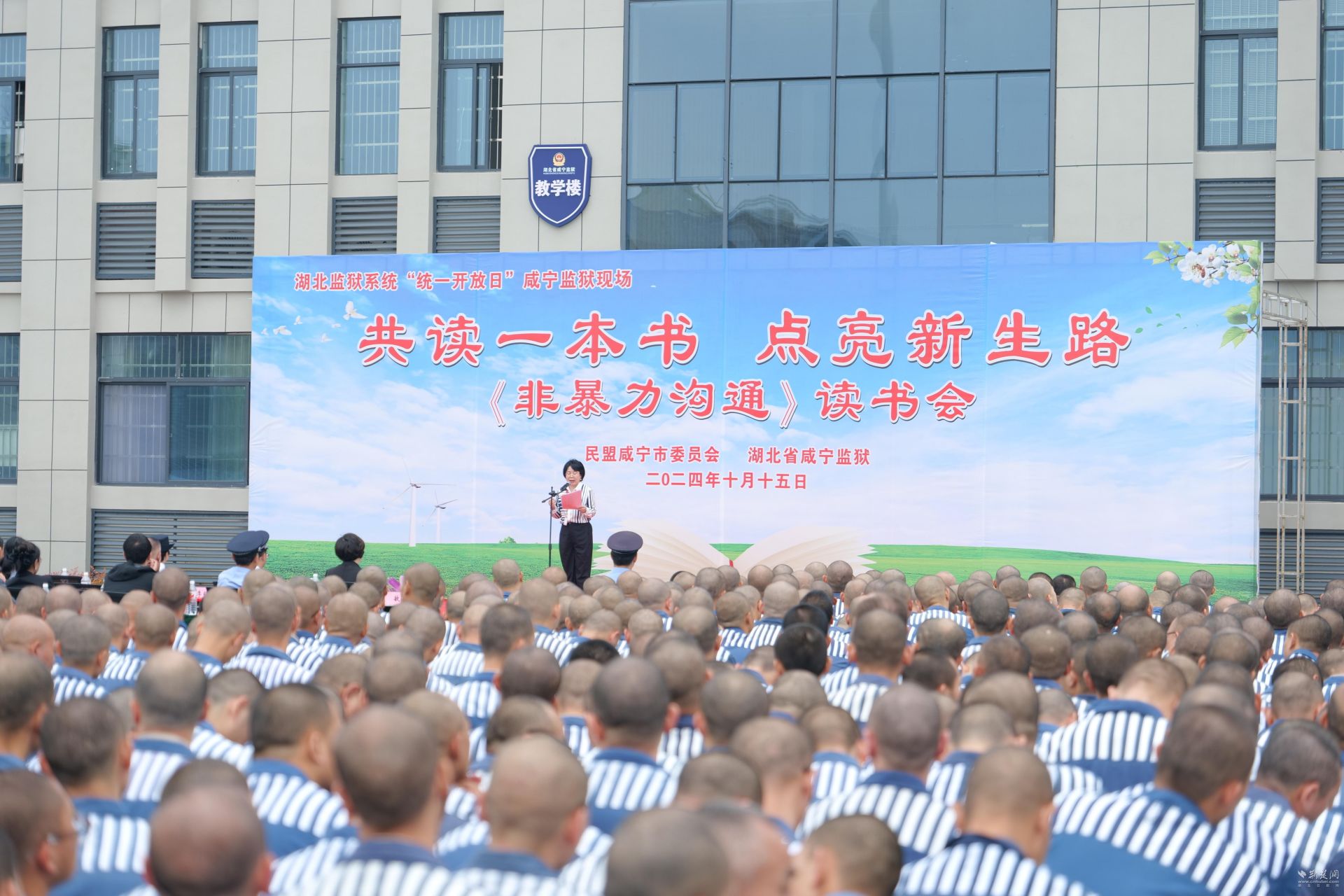 讀書幫教現場,民盟咸寧市委和監獄聯合開展共讀《非暴力溝通》一書“黃絲帶幫教”活動,從民警、職工、罪犯、親屬、名家5個層面進行讀書分享,引導服刑人員減少與同改、與警官、與家人與社會以及與自己的暴力溝通,幫助服刑人員決裂舊我、把握現在、奔向新生,贏得了現場2000多人的陣陣掌聲。