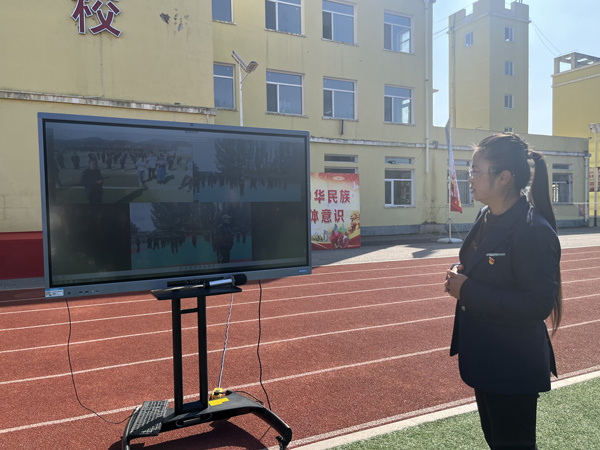 毛岸英學(xué)校和新疆建設(shè)兵團(tuán)165中學(xué)進(jìn)行在線互動。人民網(wǎng)記者 任英花攝