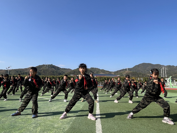 學(xué)生們展示軍體拳。人民網(wǎng)記者 任英花攝