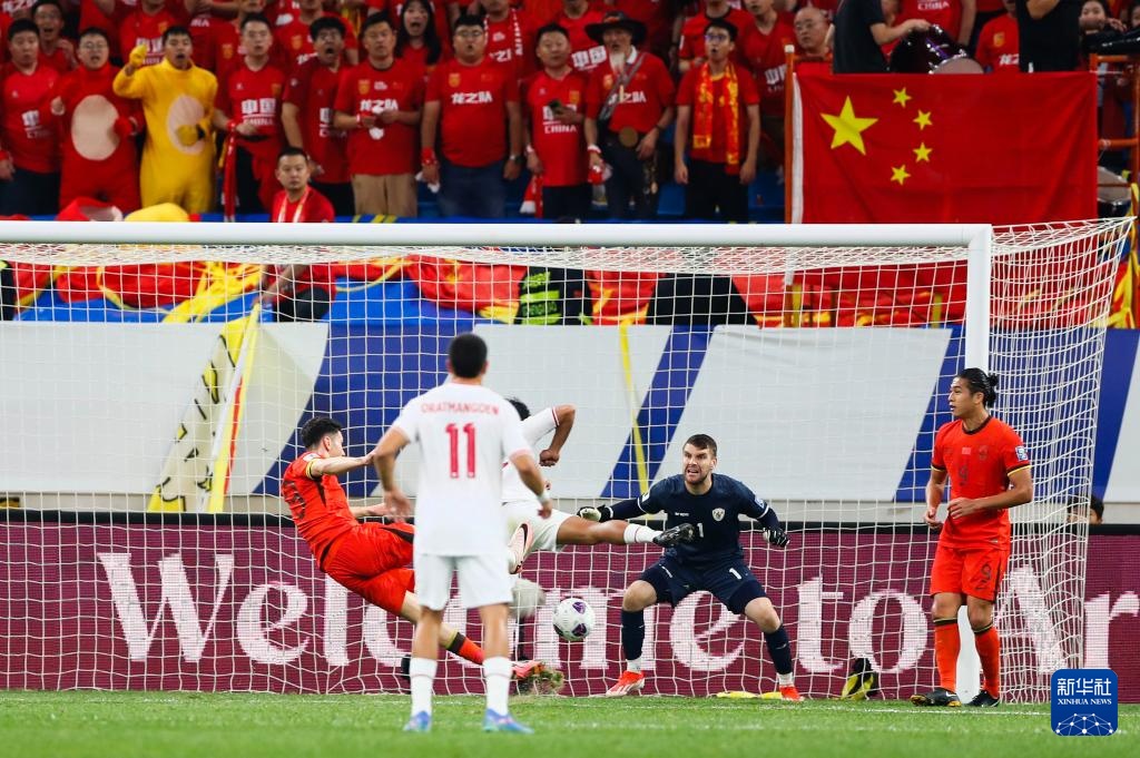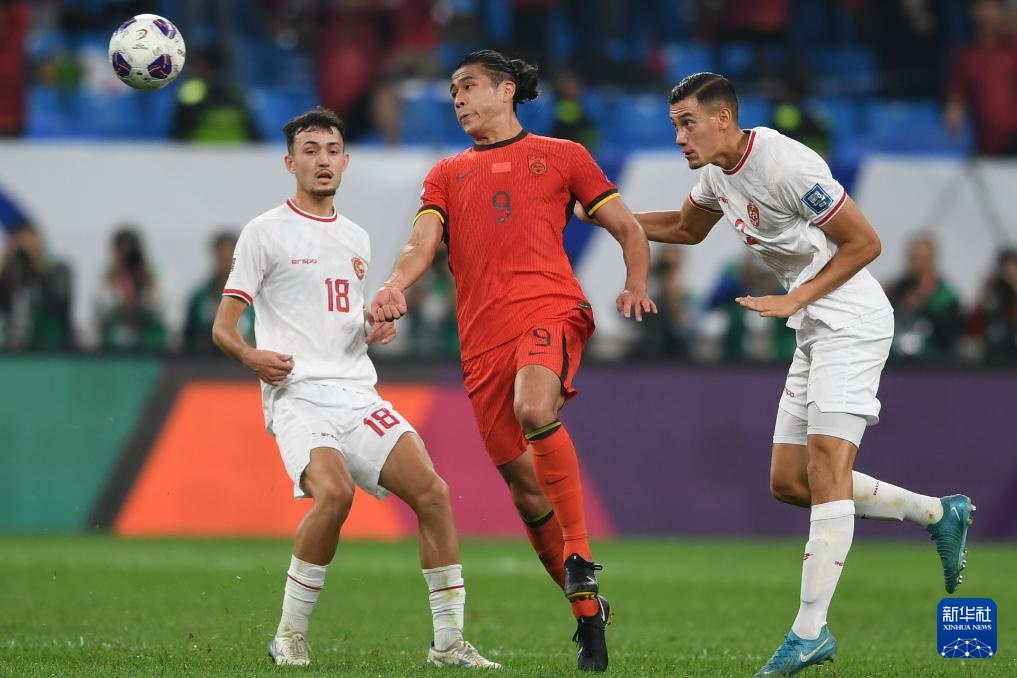 10月15日,中國隊球員張玉寧(中)在比賽中。